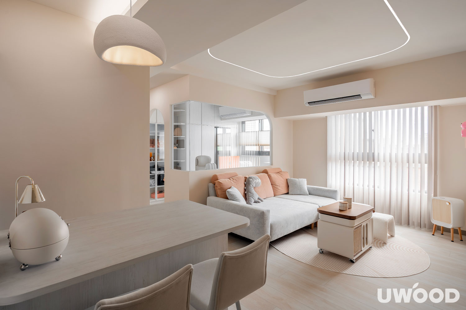 傢俱系列:2+1房1廳|優渥系統櫃、Orderfloor超耐磨木地板、造型壁板、六角PVC幾何地板、玻璃滑門、LED燈條 -